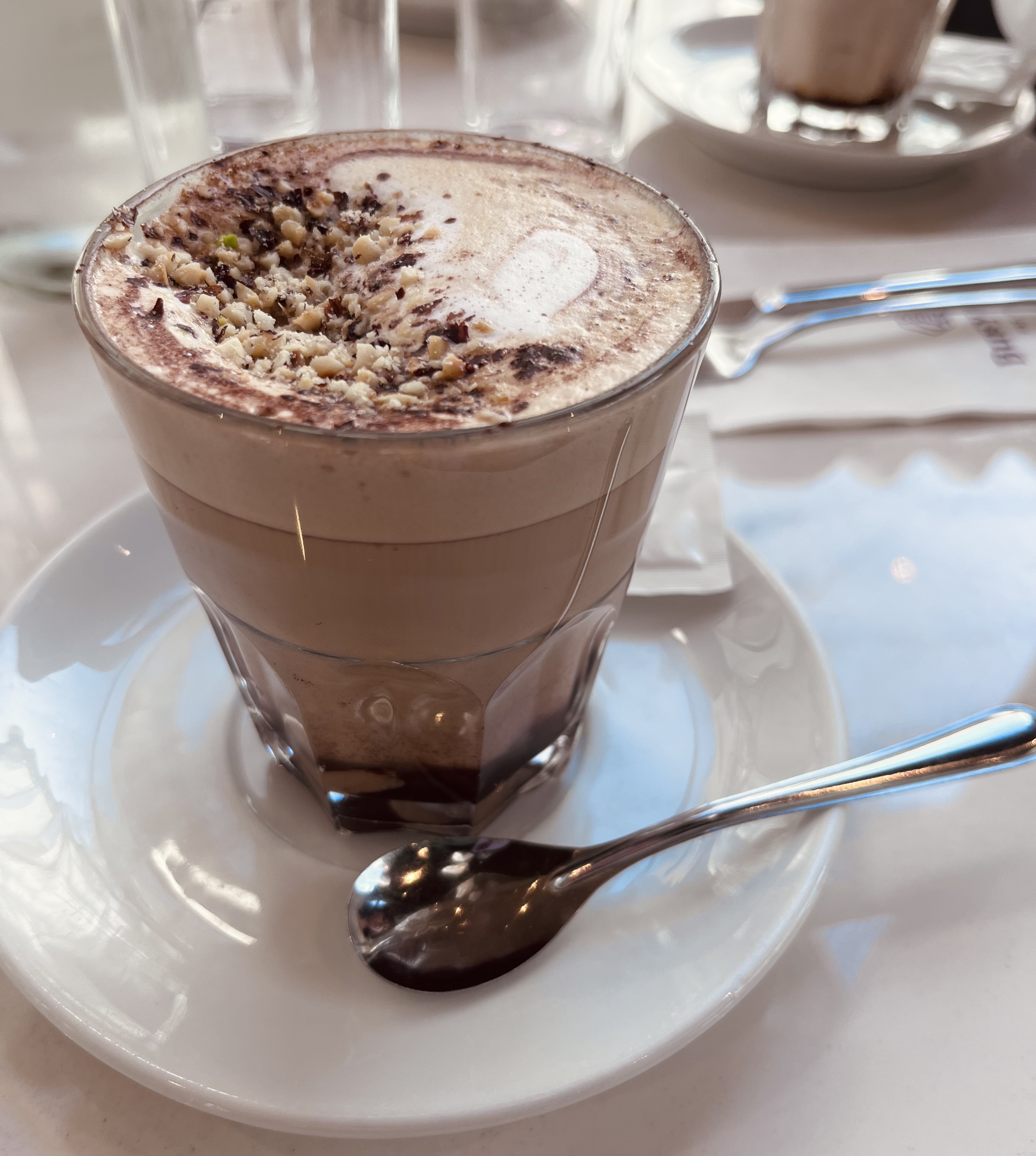 The next morning, we had brunch at Busy Bee Cafe, and I ordered a pistachio mocha. I thought it might have pistachio flavoring or pistachio milk. I was pleasantly surprised to see pistachio crumbles and dark chocolate shavings as a garnish on the mocha foam. Cafes in Malta really know how to make coffee and hot chocolate.